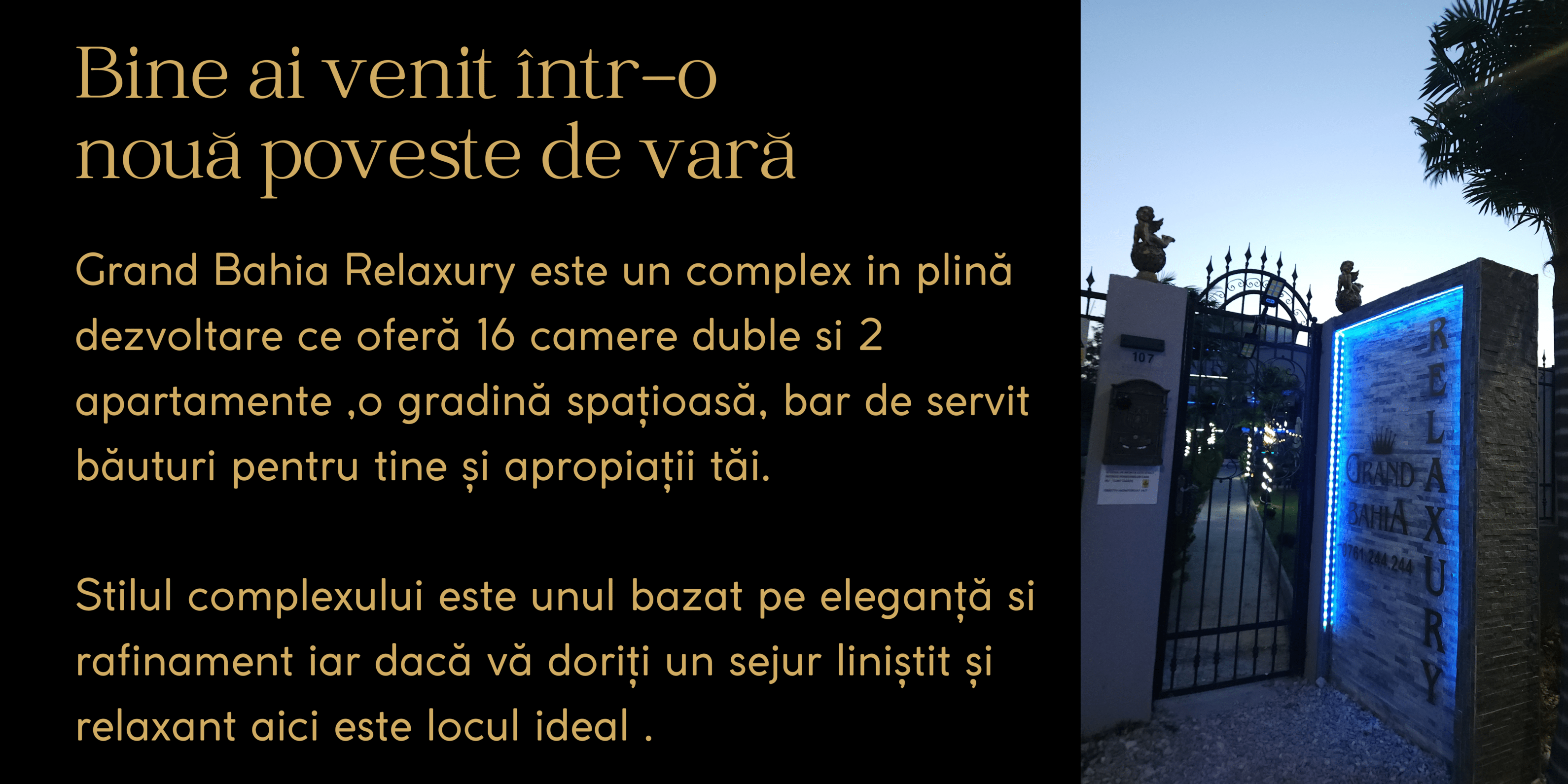 La Grand Bahia Relaxury avem misiunea de a oferi cea mai completă experiență hotelieră și ne mandrim cu calitatea serviciilor oferite, precum și cu personalul nostru calificat și gata de ajutor.